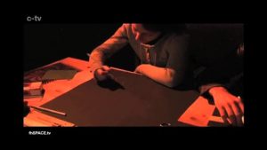 Hinter dem schwarzen Vorhang des c-tv Standes auf der Projektevernissage 2009 der Fachhochschule St. Pölten konnten Michael Geyer und Peter Priemer wieder Wahrheiten vor die c-tv Kameralinse bringen, die auch einmal gesagt werden wollten.